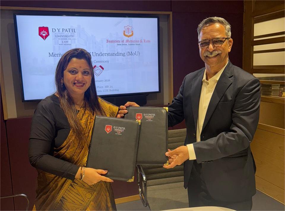 D Y Patil University School of Law (DYPSOL), Navi Mumbai, has signed a Memorandum of Understanding (MoU) with the Institute of Medicine & Law (IML) to strengthen medico-legal education, research, and patient-centred healthcare governance.